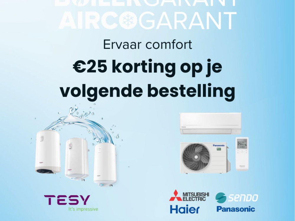 Gefeliciteerd! Je hebt een kortingscode ontvangen ter waarde van €25. Gebruik deze bij je volgende bestelling vanaf €125 bij BoilerGarant of geef ‘m cadeau aan iemand anders. Zo maak je duurzaam warm water of verwarming nog voordeliger.