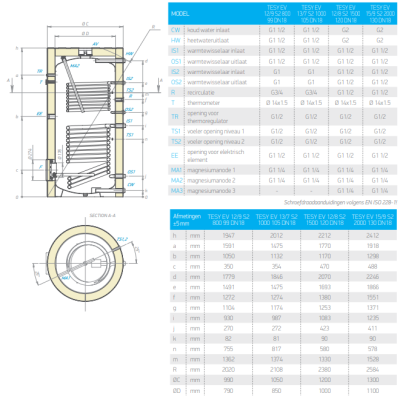 De functie van een warmtewisselaar is warmteverschil tussen vloeistoffen aan de binnen- en buitenkant van de wissellaar over te dragen van de warmste zijde naar de koudere zijde. De oppervlakte van de wisselaar welke de warmte overdraagt in m2. S1 staat voor spiraal/wisselaar 1.